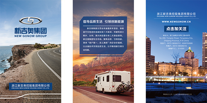 浙江新吉奥控股集团下辖房车智造、新能源汽车智造和金融投资三大板块。目前公司在浙江省台州市、桐乡市及澳大利亚墨尔本建有三大智造基地、房车研发中心和新能源研发中心以及一个新能源汽车运营公司,并在上海成立了融资租赁公司。针对新吉奥集团成立之初,亟需与之相匹配的企业形象,而企业形象不是简单的视觉包装,是配合品牌战略进行的形象设计,中网品牌策划对新吉奥综合分析后,挖掘其形象核心价值,在延承核心理念不变的前提下,对LOGO的表现形式创新、突破,融入“新吉奥”中“新”的理念,为其做了两个方向的设计。把握原有吉奥品牌DNA精髓,扣住“精于勤 成于思”的理念内核,以宣传册、微展示、宣传片的形式对新吉奥集团企业形象进行宣传,以系统VI将企业形象落实到品牌传播的每个角落。