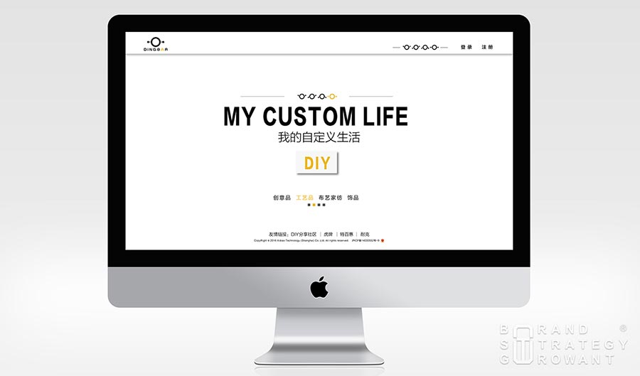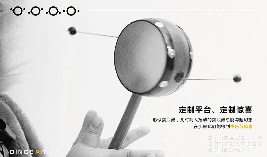 而作为互联网大数据时代的新生物—玺雕科技,主打个性化定制产品,针对的主要人群是80、90后年轻一族,作为一家崭新的网络科技公司,品牌积累基本为零,无大平台的支持,竞争对手爱定客已抢占市场先机,该如何突围? 中网品牌策划(上海)有限公司深谙互联网时代的传播之道—网络以惊人的速度产生着信息,碎片化信息时代的人们所关注的信息是有限的,“有料”人们才会看。而“料”是一种能吸引人们主动接触的内容,中网品牌策划结合互联网时代的传播特点,为玺雕科技确立 “互联网+内容”的传播策略,再通过对玺雕科技全面综合的分析,把握以消定产的时代特点、工业4.0行业正在起步阶段的机遇,电子商务蒸蒸日上的形势,研究80、90后爱玩、耍个性、追求品质生活的性格特质,寻找玺雕品牌传播最为关键的引爆点,为其塑造了全新的品牌形象, 确定“我的自定义生活”的传播主题,取拨浪鼓之形、以“定吧”为设计主题设计了玺雕的视觉传播符号,三个圆分别代表商家、平台和用户,通过定制平台为商家与用户提供满意的服务,整个形寓意定制平台、定制惊喜,并做了系列规划设计。从品牌名、LOGO、广告语到移动端微展示、视觉形象识别系统VI都非常有料,满足目标受众对“定吧”的幻想和对个性生活的憧憬。