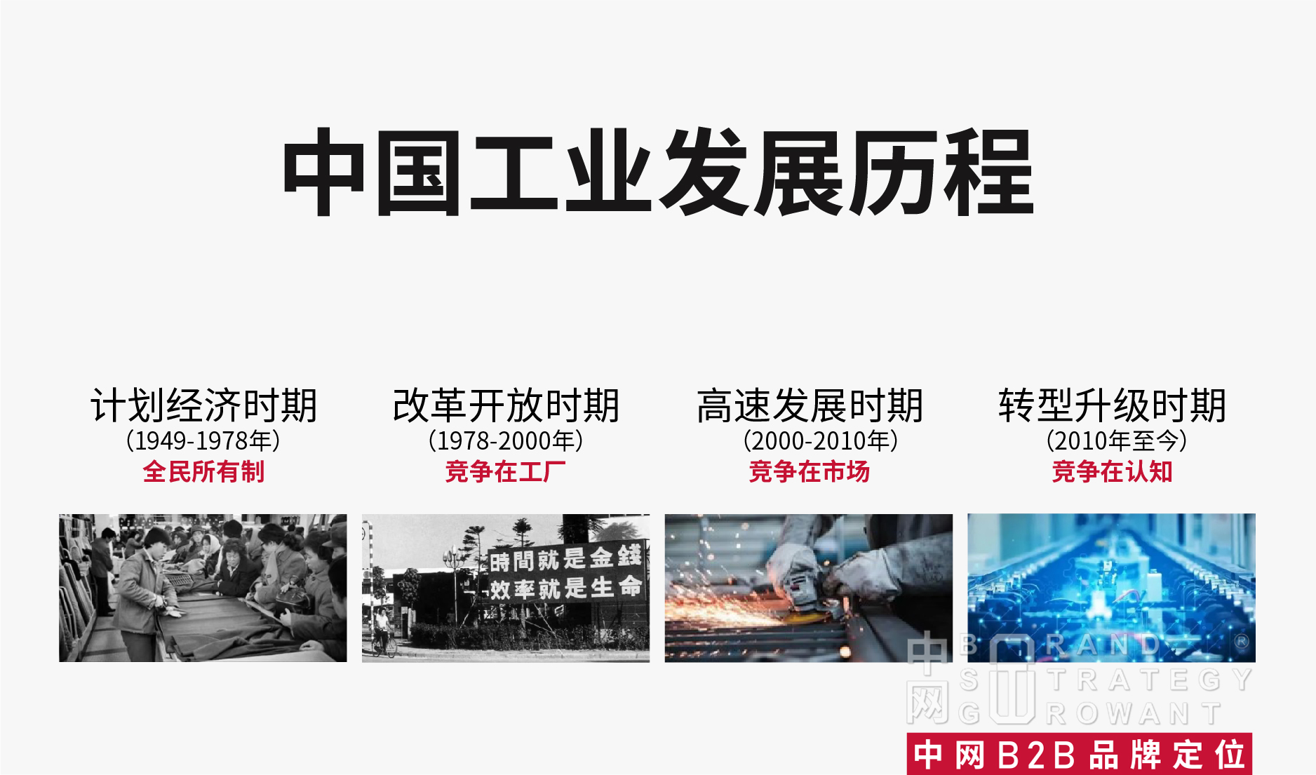 通过中国工业发展历程,可以看出,现在是品牌制胜的时代。然而,大部分B2B企业会说:“我们做过品牌了”“我们有LOGO”“我们有一套VI”“我们有广告语”……