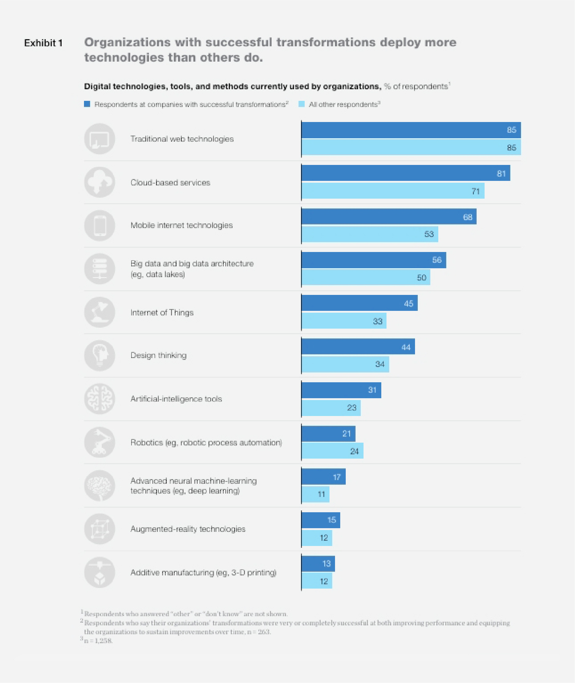 成功转型的组织部署的技术比*