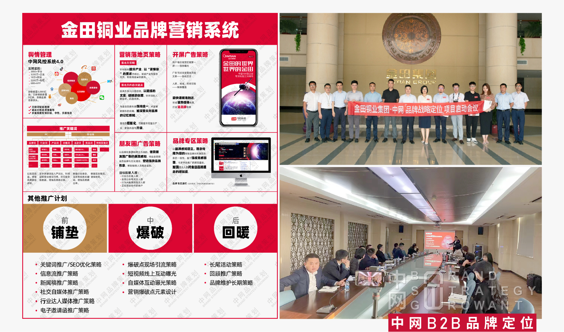 金田铜业集团高层对中网展示的金田品牌战略定位表示积极肯定,并愿继续积极推进,实现互联网营销体系化运营落地,力求借助中网在工业制造业领域积累的营销全案经验,通过互联网数字化营销布局,实现【精准人群、精准时间、精准内容】的三维立体精准推广。从而进一步稳固金田集团在铜加工领域的行业地位,成为该领域不可撼动的龙头企业。