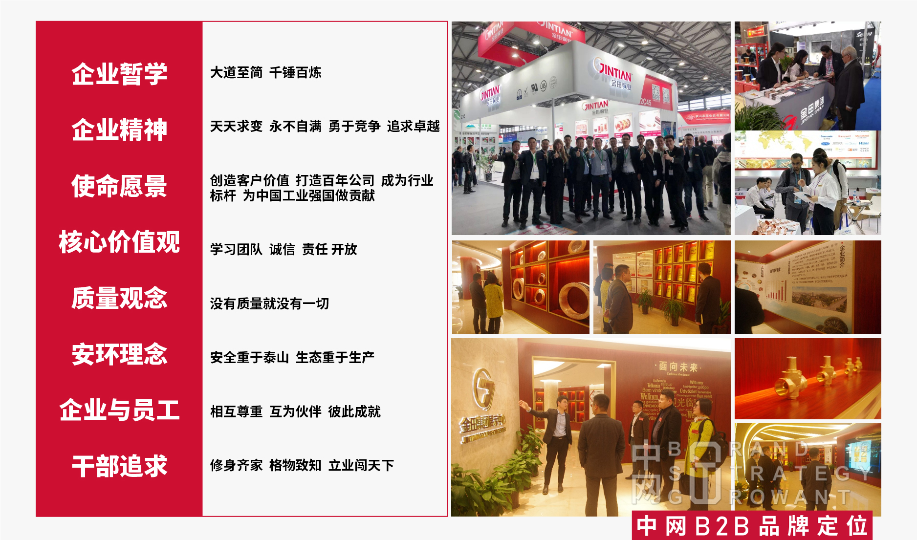 金田的企业文化从提炼到落地,作为营销咨询专家的中网全程陪跑“知信行”三个阶段,从而建立起金田企业文化的“物质层”、“制度层”、“精神层”,再通过正式传播、非正式传播、理念物化、领导垂范、制度匹配、仪式活动、经验推广、行为规范等方面开展工作。